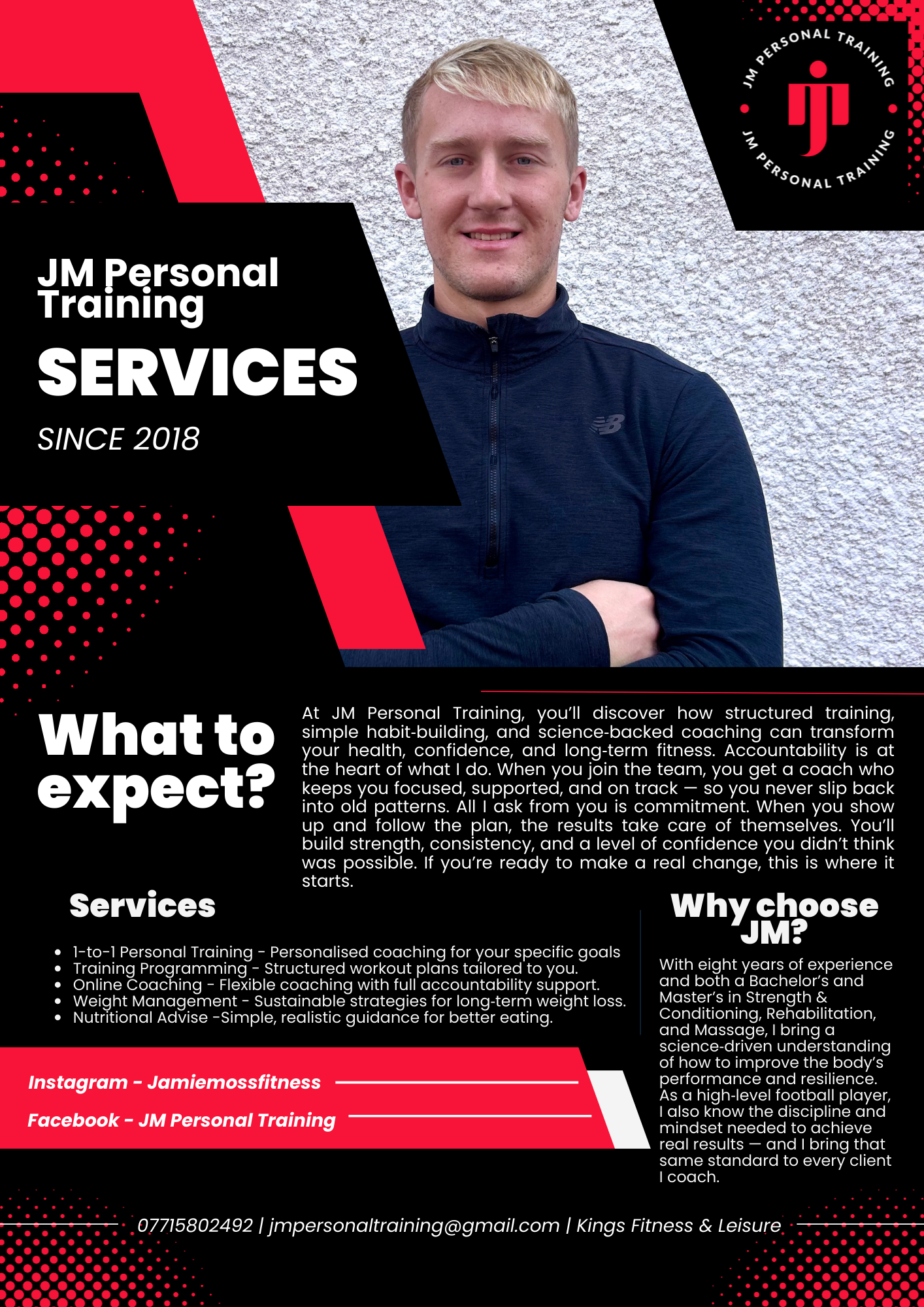 With over 100 clients coached, I’ve seen first‑hand how the right training, lifestyle changes, and simple habit shifts can completely transform someone’s energy, confidence, and long‑term health. My coaching is designed to remove the guesswork, give you a clear roadmap, and support you every step of the way.